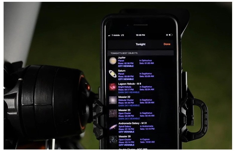 The StarSense Explorer application automatically generates a list of currently visible objects. View planets, brighter nebulae and galaxies, star clusters and double stars from within the city. Or take your telescope to a darker sky to see faint deep-sky objects.