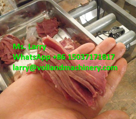 This machine mainly cuts fresh meat into slices or strips. Can also be cut into cubes on the third cut. Main structure and features: frame, drive mechanism, cutting mechanism, motor. The whole machine is made of stainless steel, driven by two electric motors, with a pair of four sets of cutting boards up and down. When only one pair of knives is working, it is slicing; when two pairs of knives are working together, it is slicing. This machine has high cutting efficiency and easy cleaning. The meat is cut into shreds at one time, driven by dual motors, which can be controlled individually, the slices can be cut into shreds, and the shreds are cut into meat pieces again. It is a good equipment for meat processing. The fresh meat slicer is specially designed for fresh meat products, which can cut all kinds of fresh meat into (silk) strips at one time. Ideal for restaurants, supermarkets, meat market processing, small processing plants, etc.