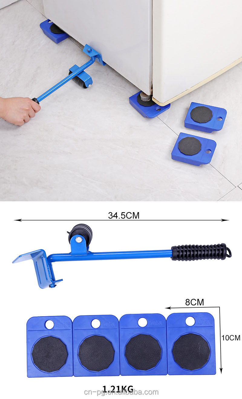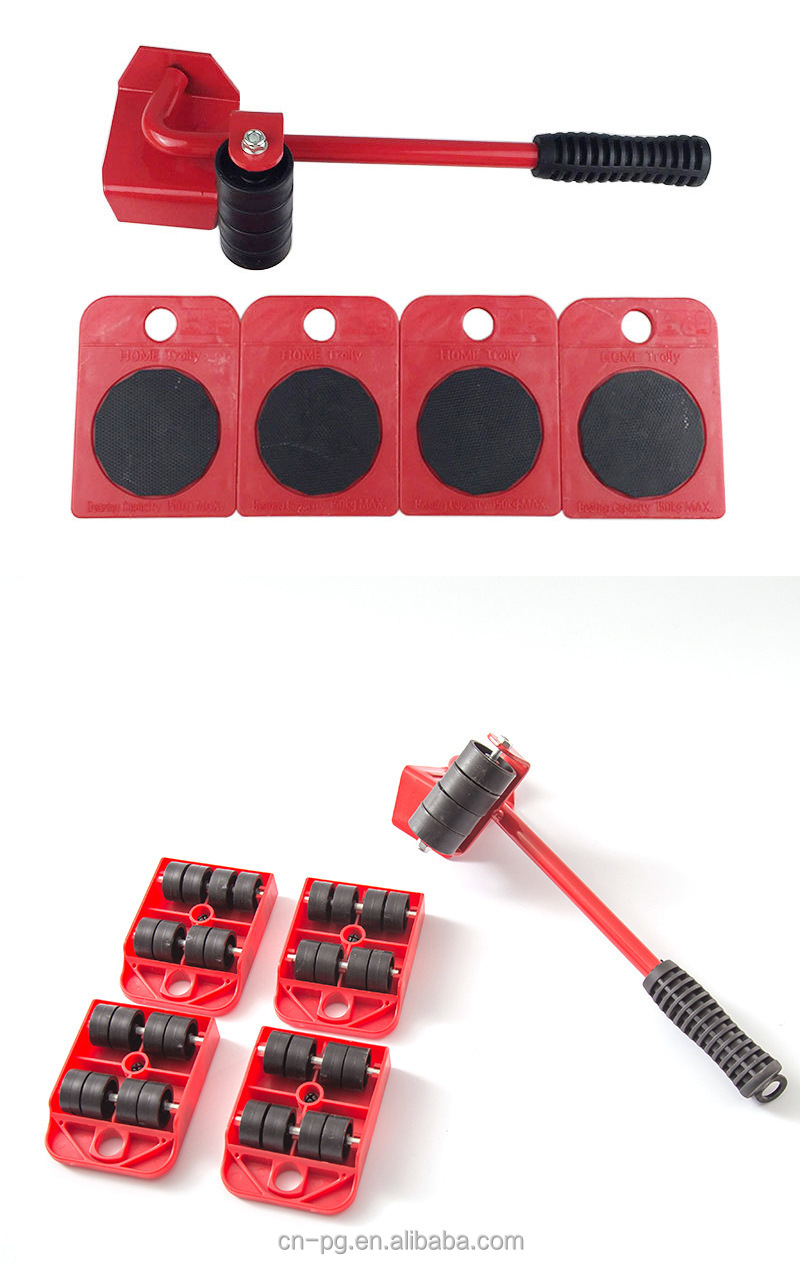 Furniture Handling Tool Set Furniture Transport Lifter Heavy Object Handling Tool 4 Wheel Handling Rollers + 1 Wheel Bar Hand Tool Set