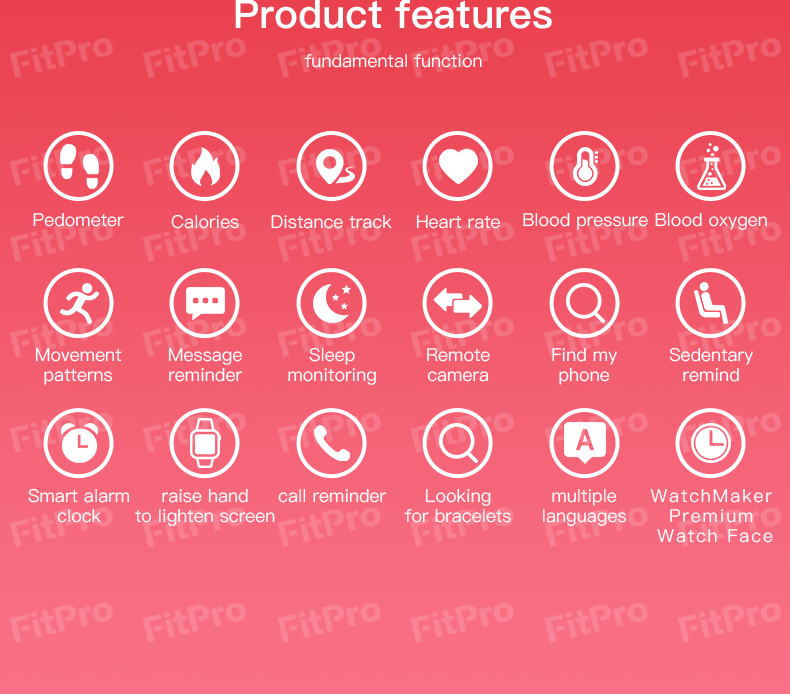 | Function: | Pedometer, music control, remote control, incoming call reminder, answering calls, push messages, dialing, heart rate tracker, blood oxygen monitoring | Display color: | color |