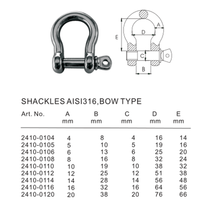 | Material: | 304/316 Stainless Steel | Shackle pin type: | With safety bolt pin |