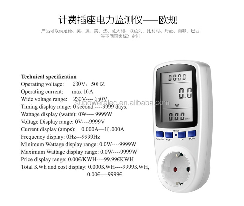 SUPOELE AC Power Meters 220v digital power meter eu energy meter watt monitor electricity rate graph measurement socket analyzer