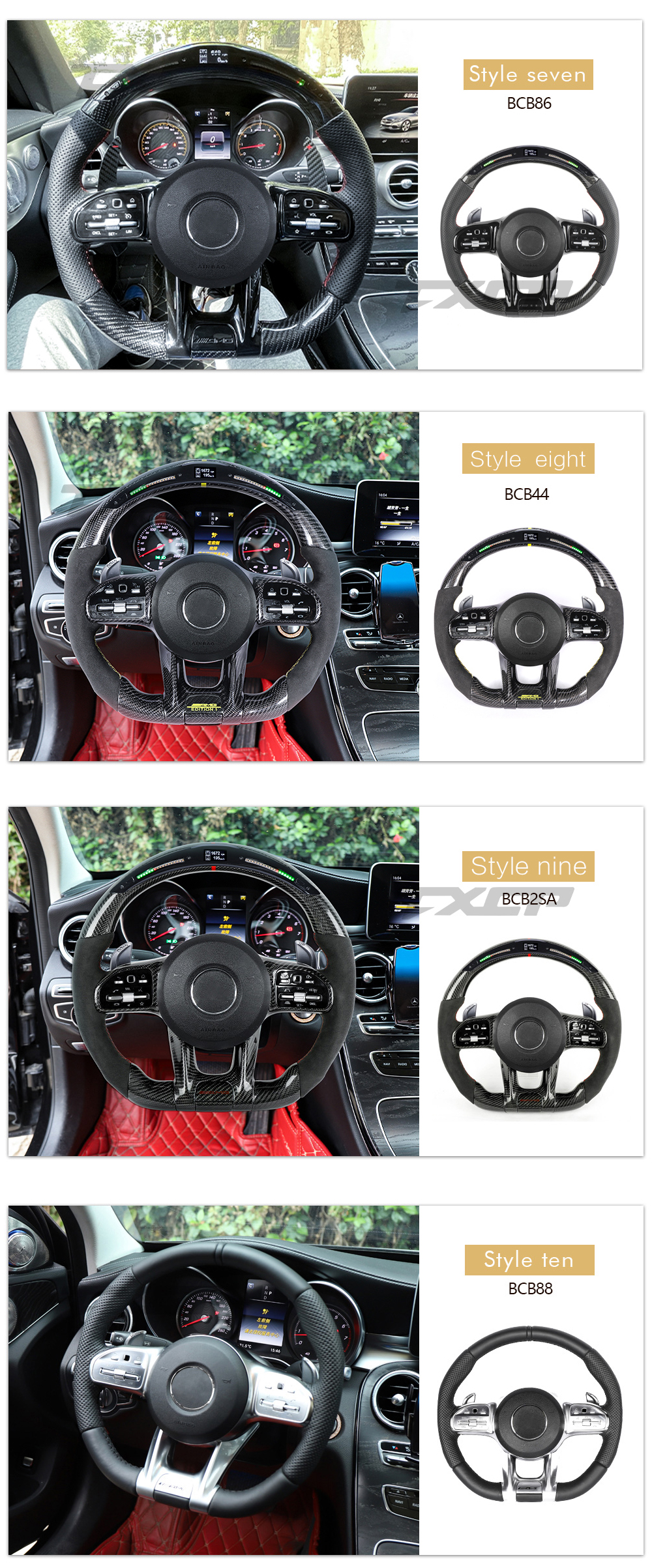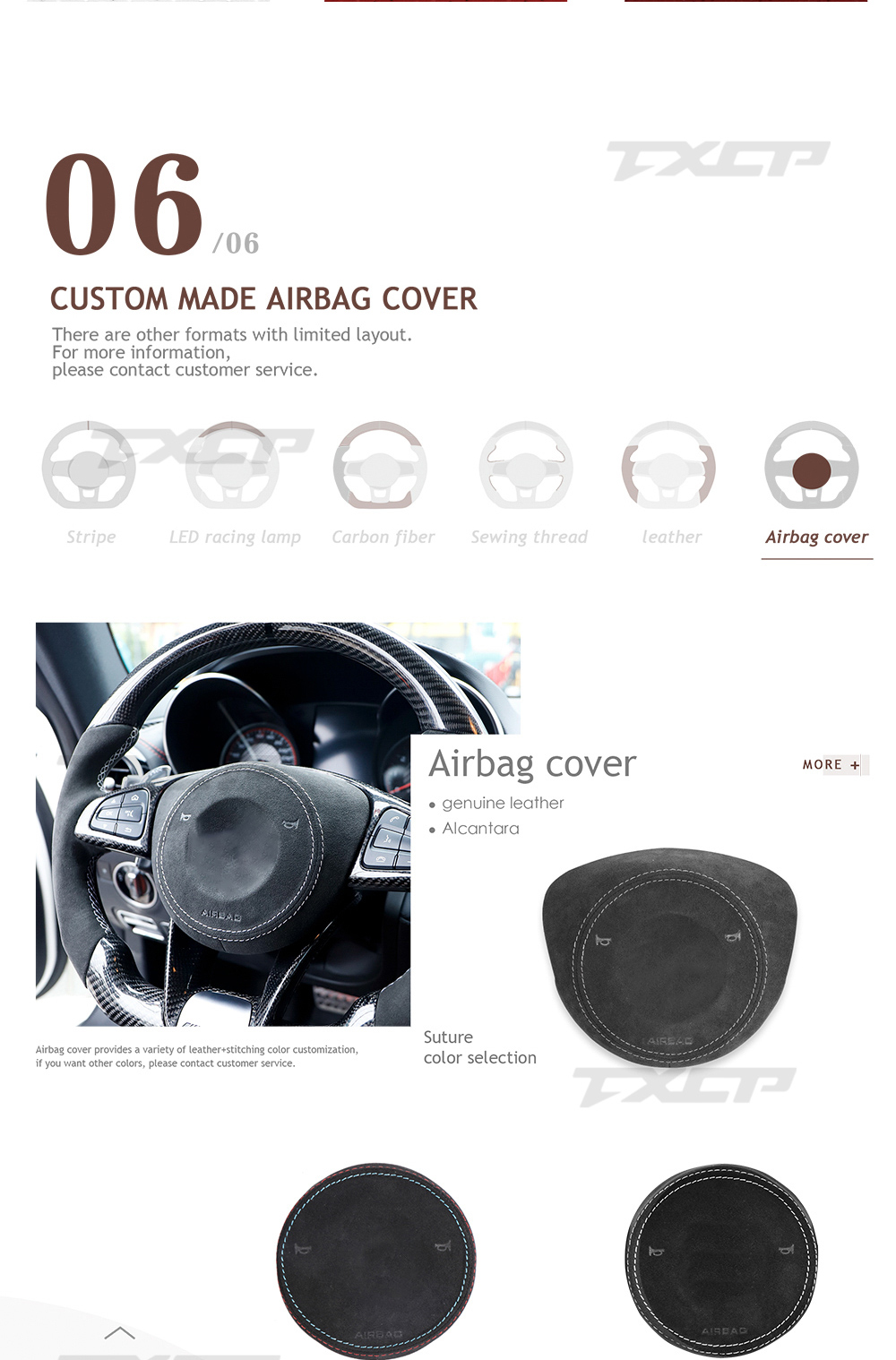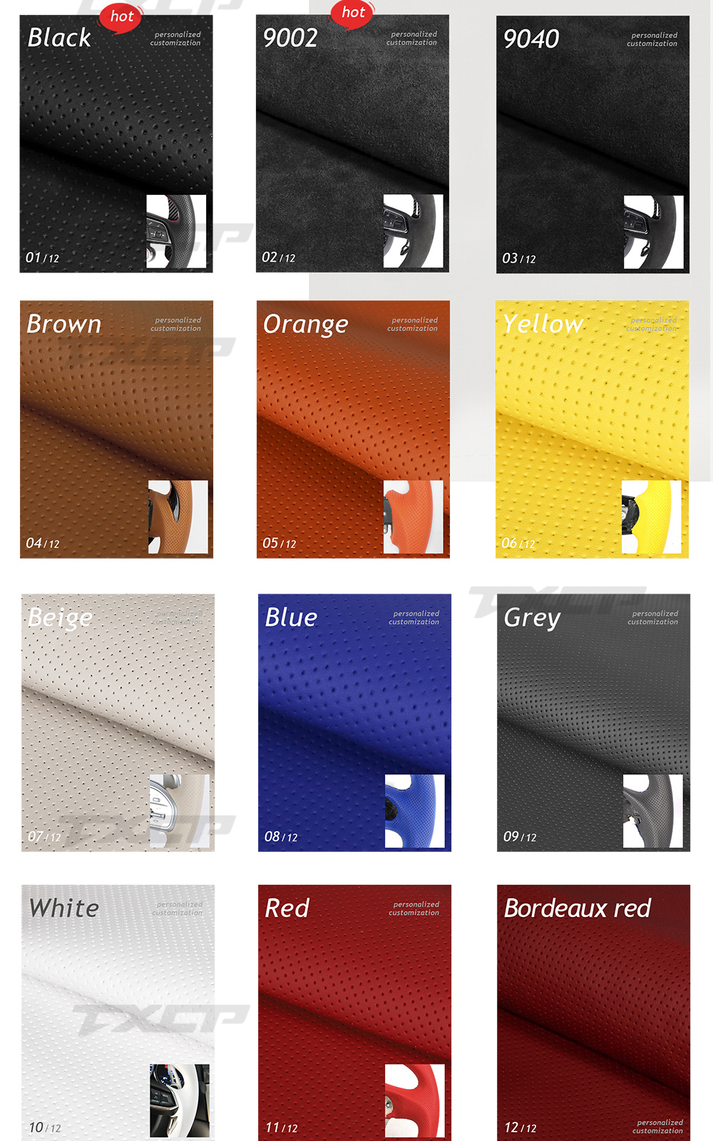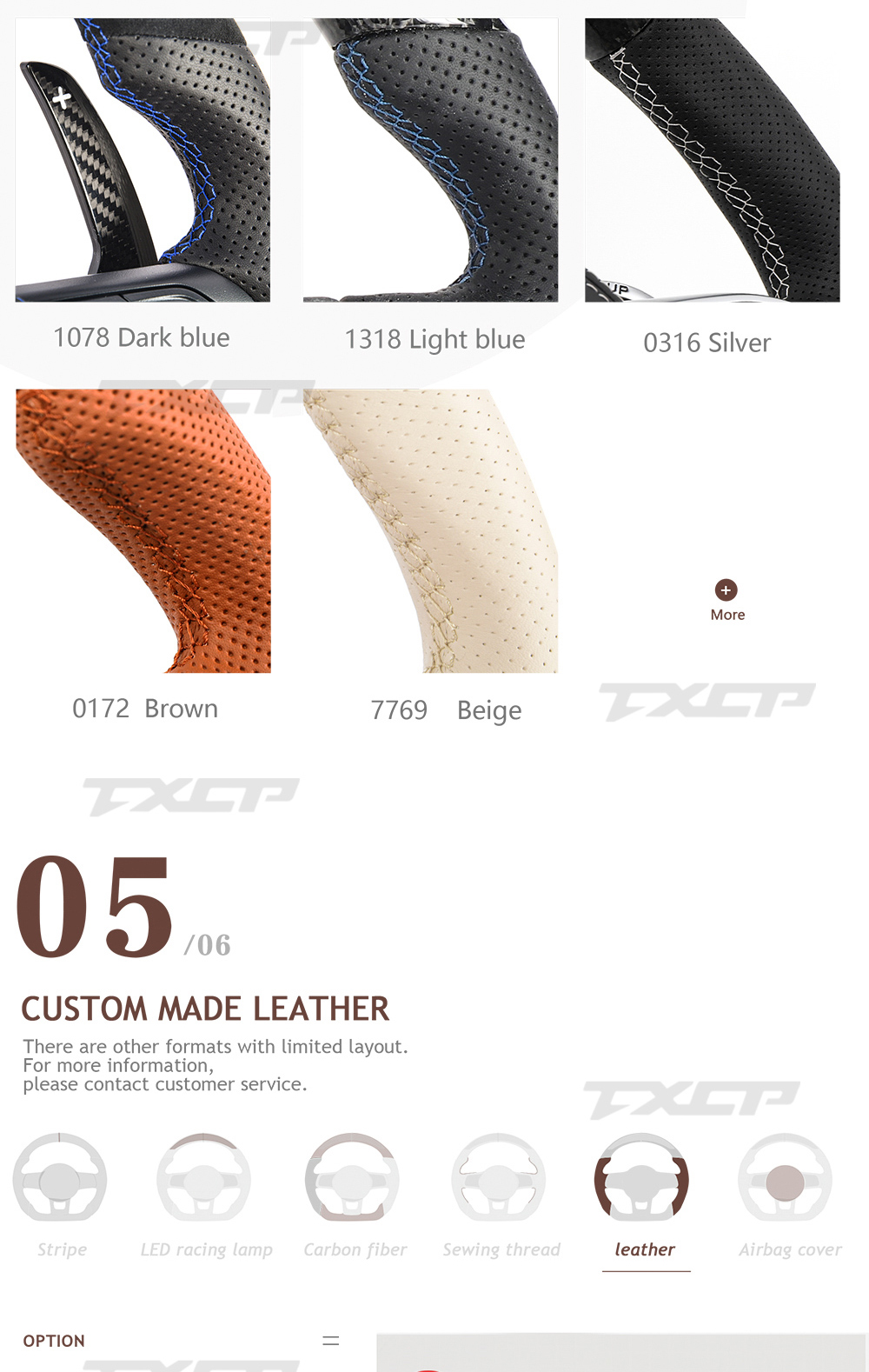 Accept customization, can customize carbon fiber color, leather color, stitching color, stripe color, etc. |