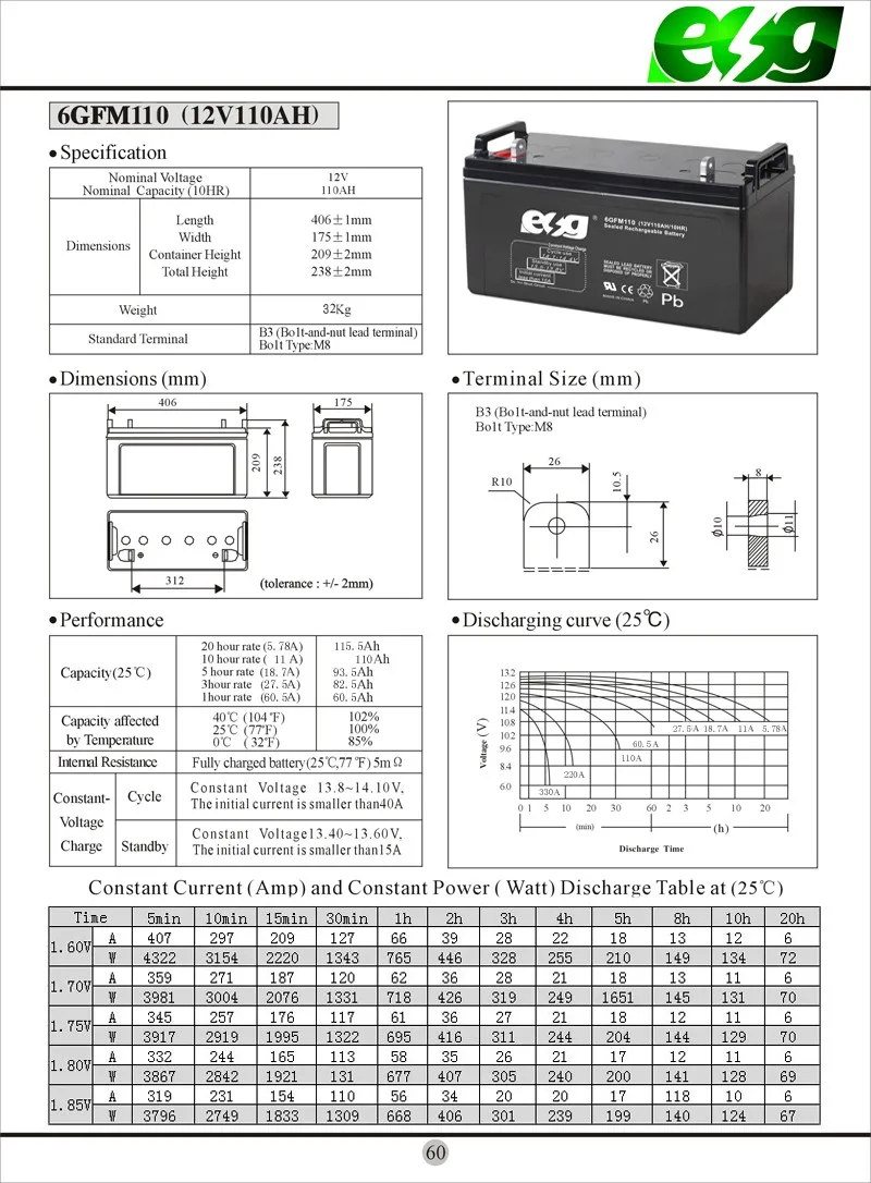 ESG batteries are honourably recognized by UL and SGS, and also have CE mark.