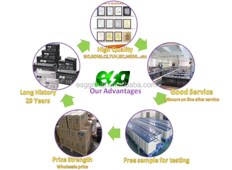 | Packaging Detail: | Packaging in carton and pallet for High quality lead acid Deep cycle battery 12V 100Ah for solar and ups battery; | Brand Name: | ESG; |