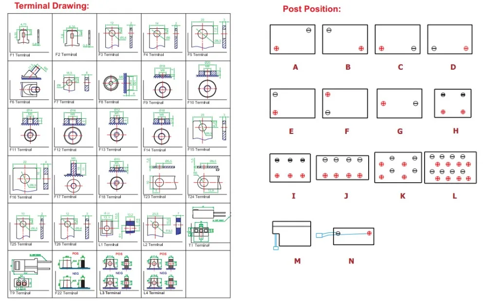 • The grid of electrode plate is in radial structure, which is favorable for improving the utilization rate of active materials. Pb-Ca-Sn-Al alloy makes the positive plate have a good performance of corrosion proof and makes the negative plate have a high over-voltage of hydrogen evolution. Unique lead paste formula enables perfect recovery performance of battery recharging after deep discharging. The battery has strong cycle and duration performance, sufficient capacity and long life.