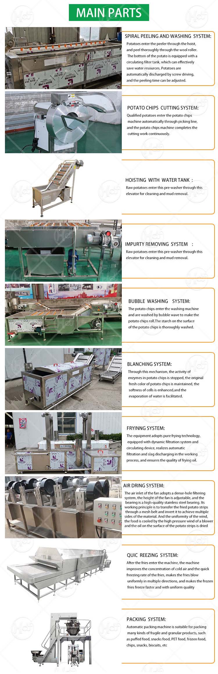 Henan Hualiang Machinery Technology Co., Ltd. is a food machinery factory integrating production, qualification, production and sales for 18 years. The company has passed the ISO9001 international certification, the main products have passed the CE certification, the products have reached more than 50 patents, and have the right to import and export. Our technology has been widely used in the production of the following products: Fryers, Vegetable and Fruit Washing Machines, Vegetable Cutting Machines, French Fries/Crisps Production Lines, Seasoning Coating Machines, Drying Equipment, Pasteurization Lines, Chicken Feet Production Lines, Conveyor machine, elevator, vibrating screen, food packaging machine, etc.