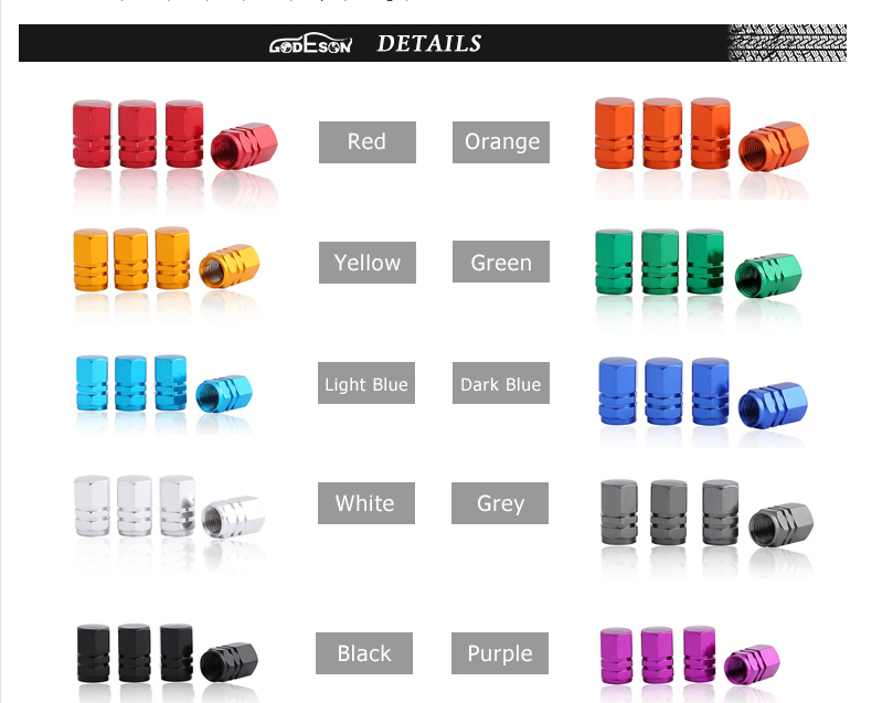 | product name: | Aluminum tire valve cover valve stem cover | aspect: | 10*H16.8mm |