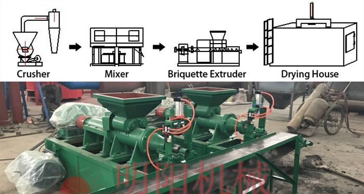 To save labor, the entire production line requires belt conveyors, binder mixers, and charcoal binder wheel mills.