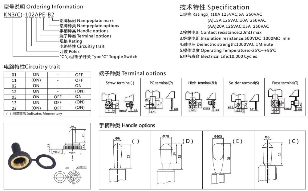 | Mechanical life: | 50000 cycles | terminal: | Solder terminal |