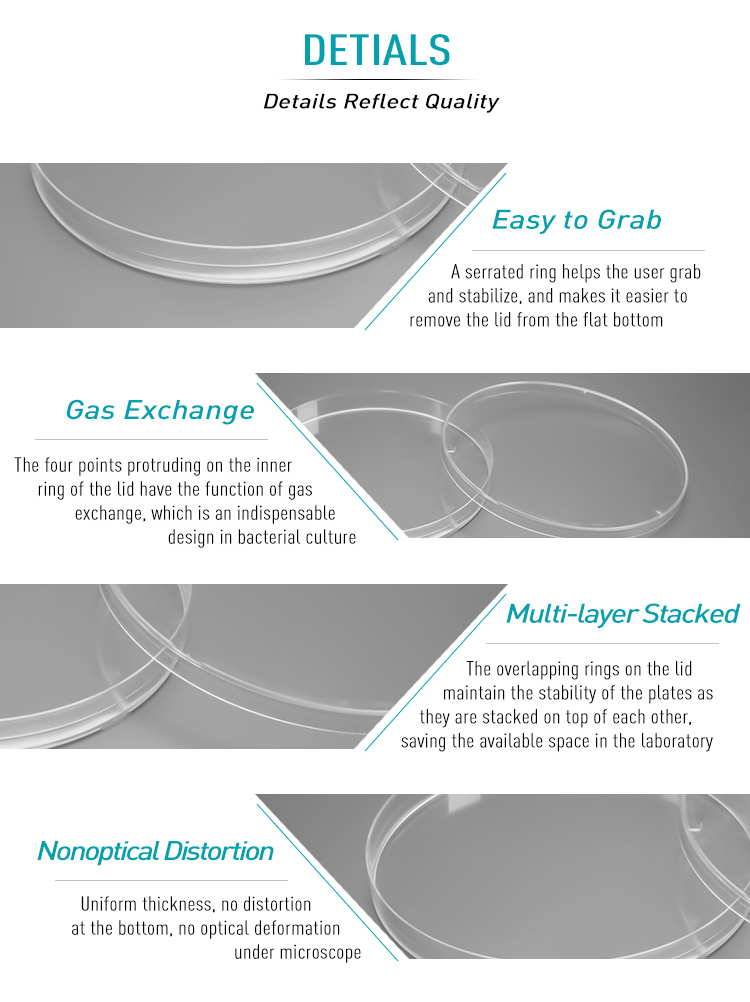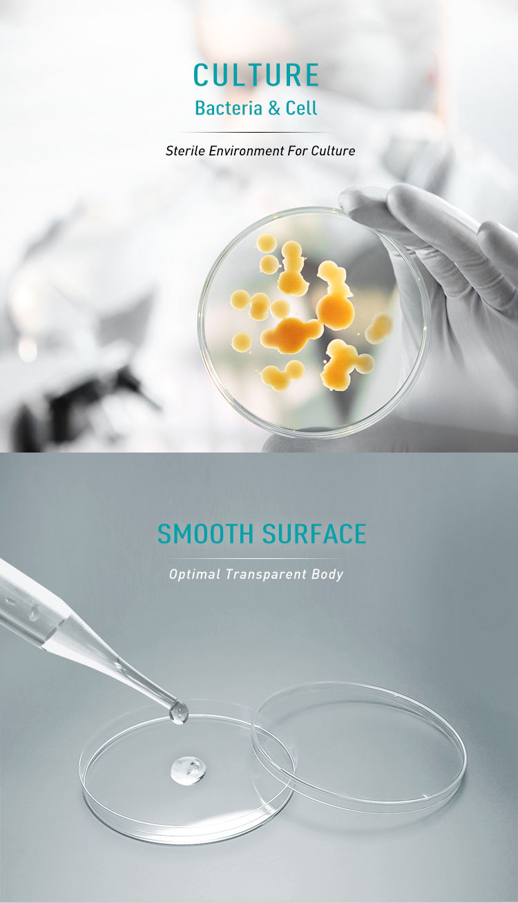 Made of high-transparent medical-grade PS material, it is used for the cultivation of microorganisms such as fungi and bacteria.