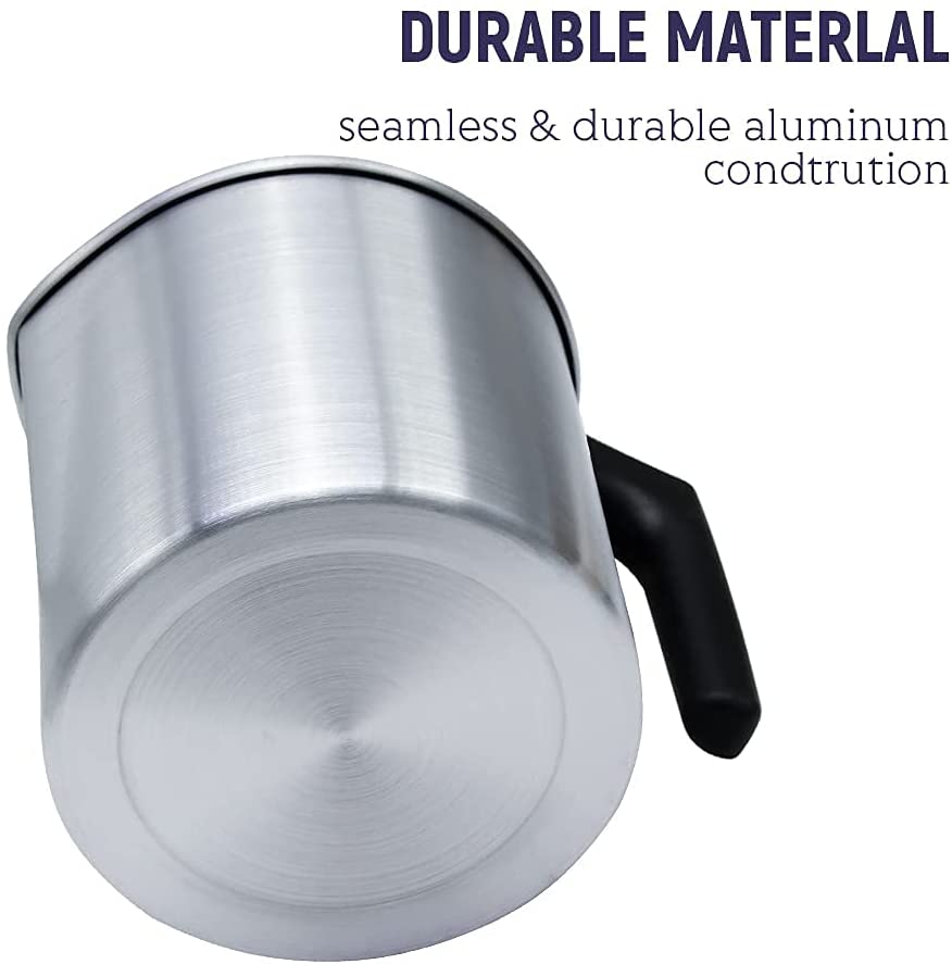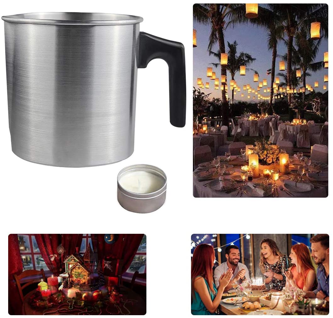 1.Large: The pour is 5.11*5.11 inches. This pourer holds up to 1200ml of molten wax using a double pot and is the perfect tool for DIY candle making.2.Seamless Aluminum Construction: Excellent thermal conductivity helps wax cool quickly. Non-stick, easy to clean with soap and water.