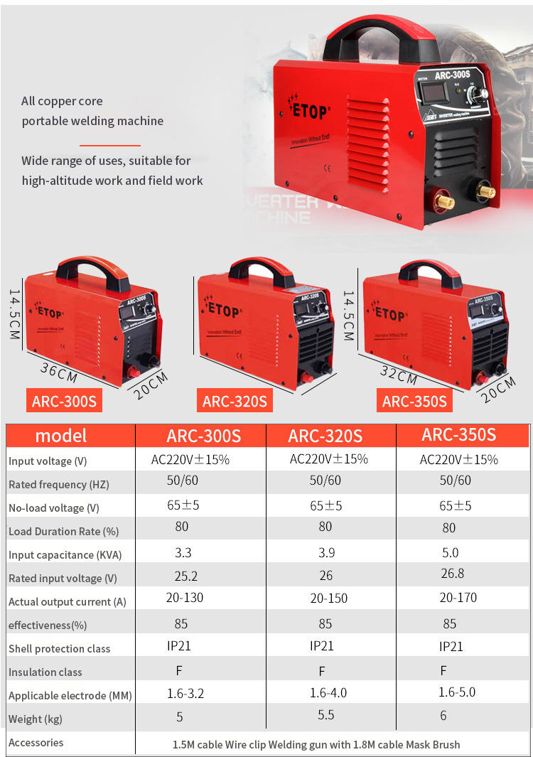 Welding ability | 2.5/3.5/4 electrodes, all day welding |
