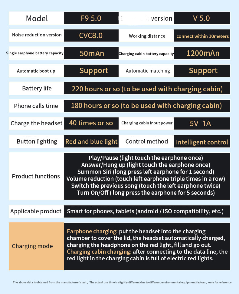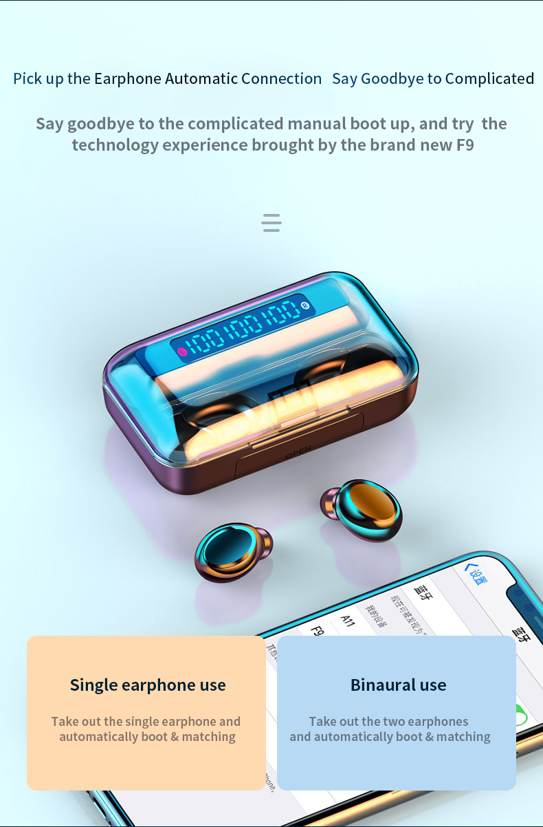 | product name: | TWS F9-5C Wireless Headphones | Wireless Type: | other |