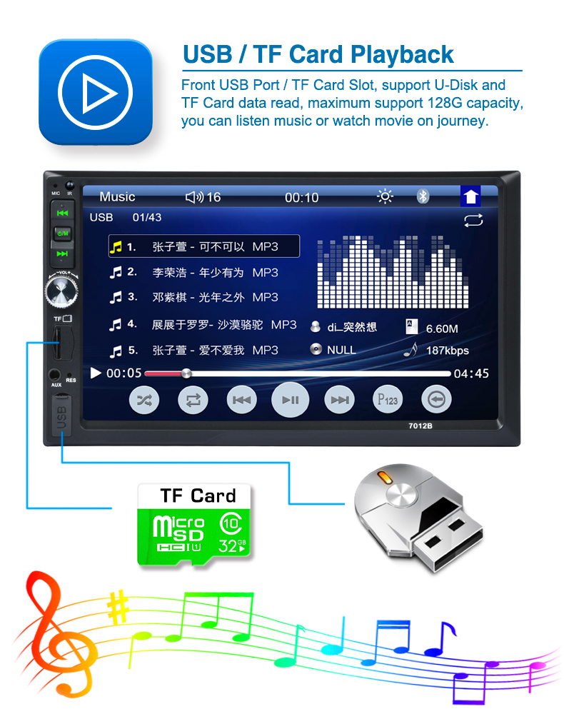 | model: | RK-7012B | Feature 2: | Supported audio formats: MP3/WMA/WAV/FLAC/OGG/APE |