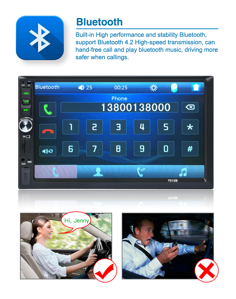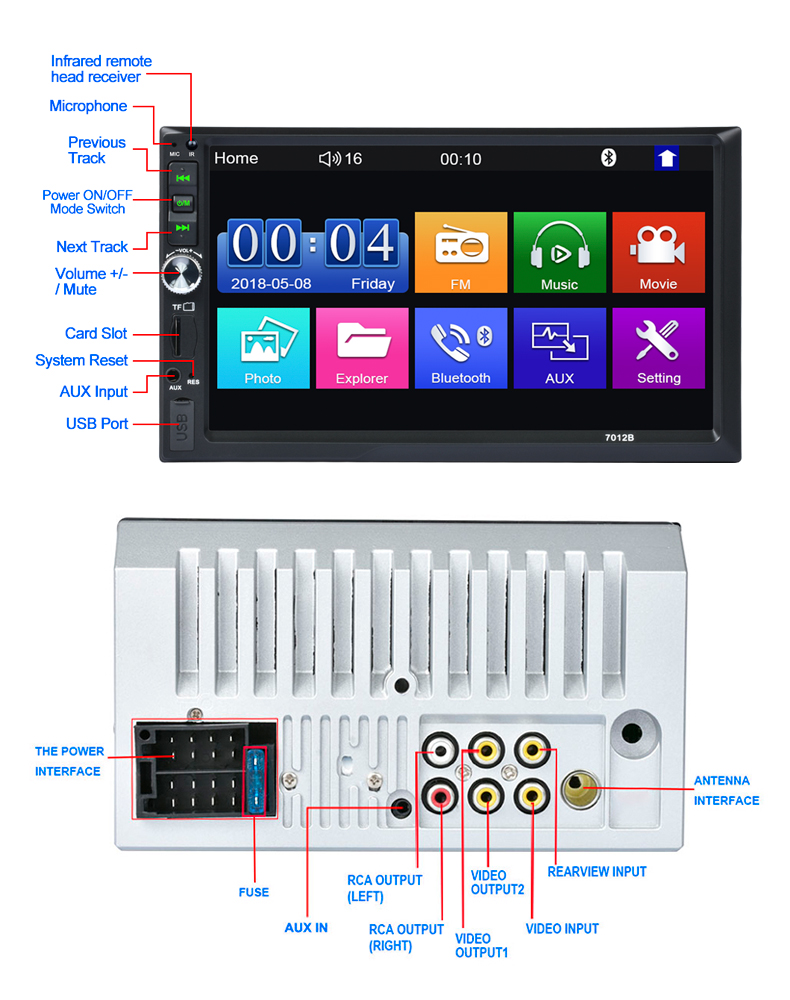 | Function: | Stereo, hands-free, RGB, remote control, mirror link, built-in microphone, split screen, file manager, car steering wheel controls | Single package size: | 23X18X16 cm |