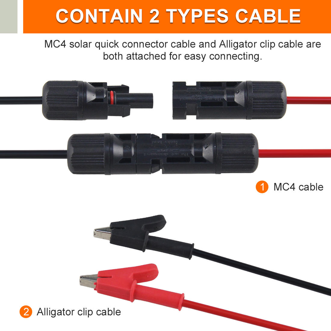 4.Automatic MPPT and manual MPPT detection5.Connect or two alligator clip cables to suit different connection requirements.