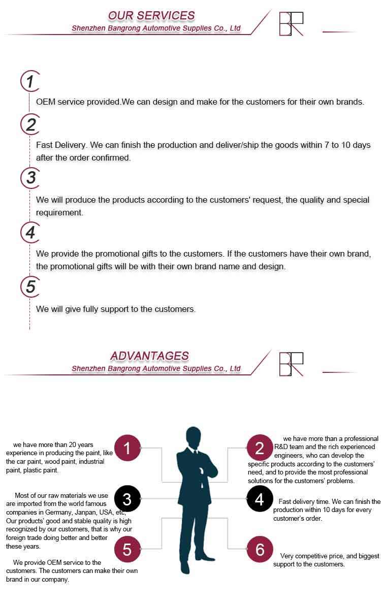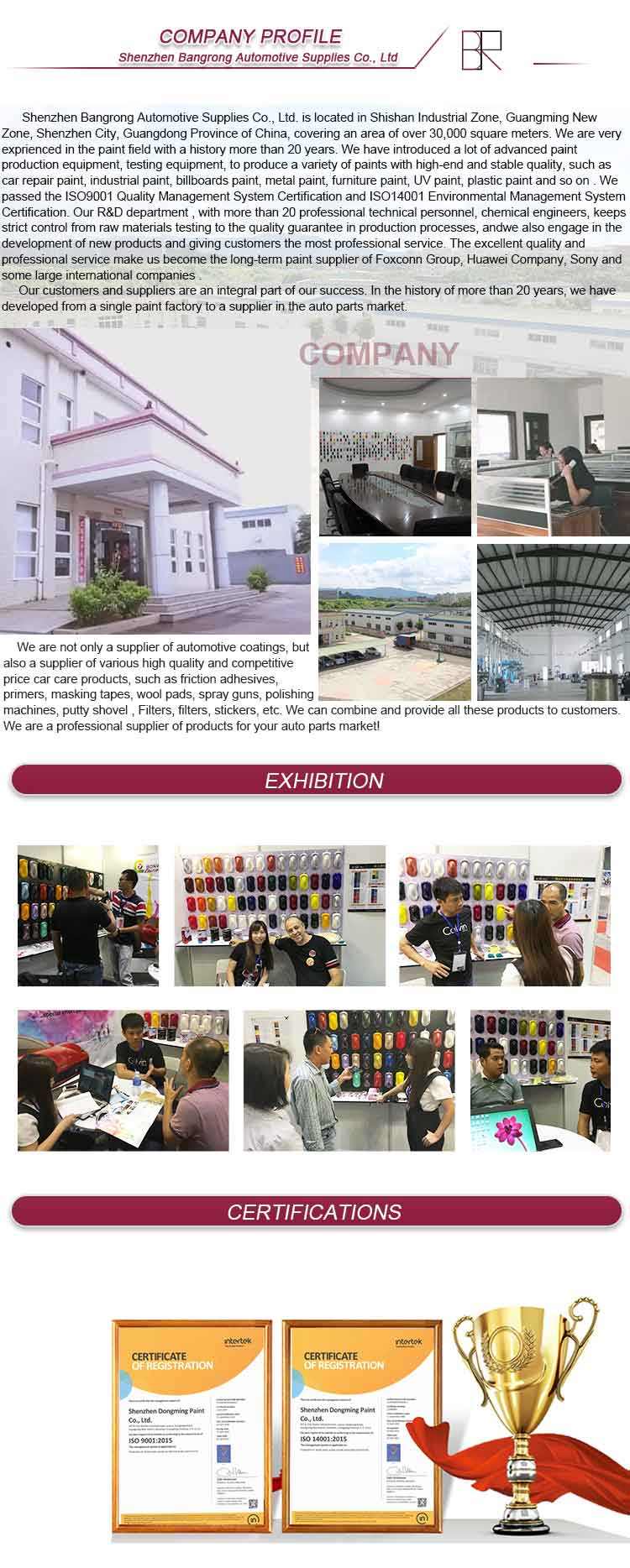 A: We are a professional paint factory with a history of more than 20 years. We mainly produce automotive paints, but also industrial paints, wood paints, plastic paints, etc. Besides paints, we can also supply car care accessories such as primers, abrasives, spray guns, polishing pads, fleece pads, sandpaper, masking tape, filters, strainers, putty scrapers, etc.