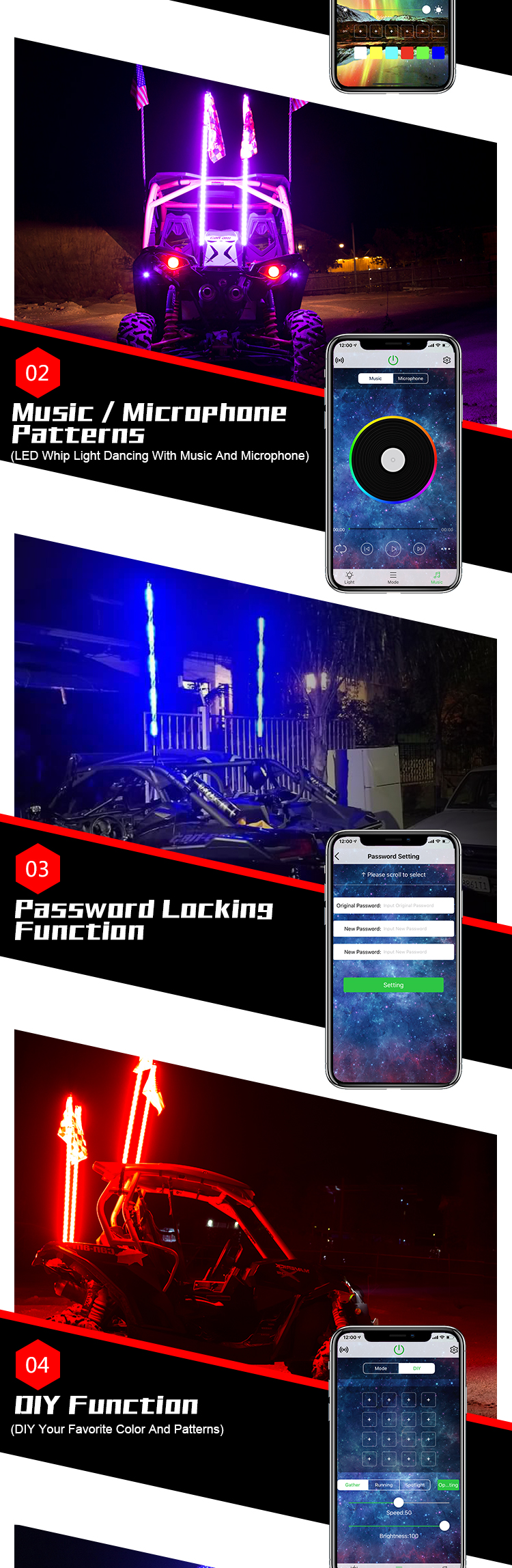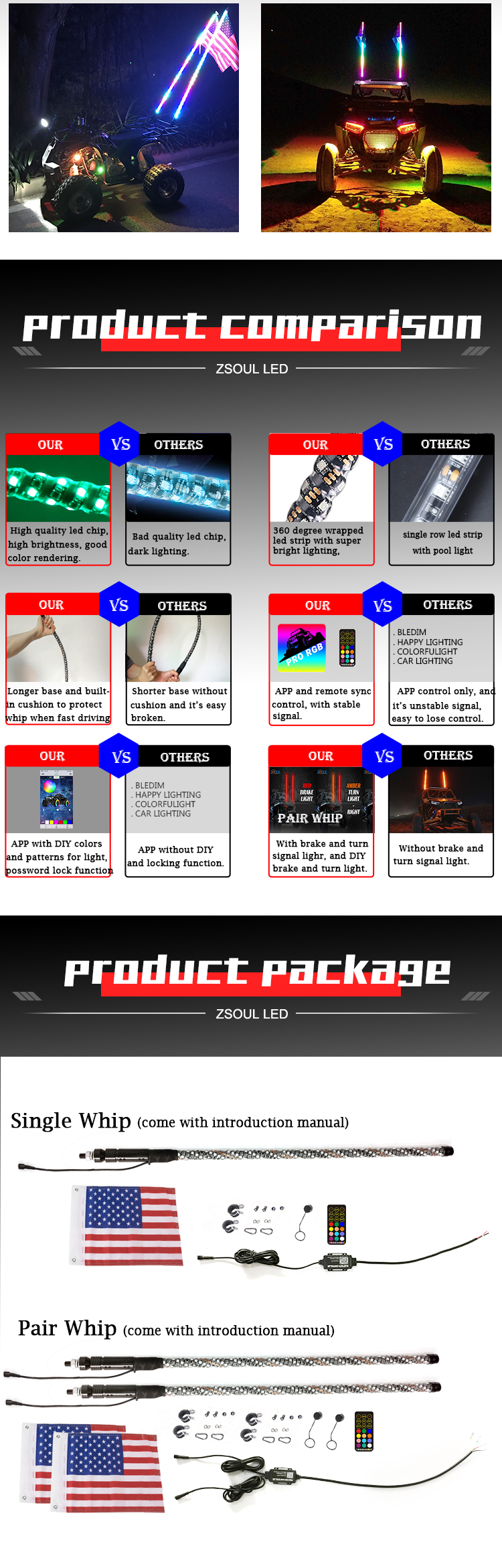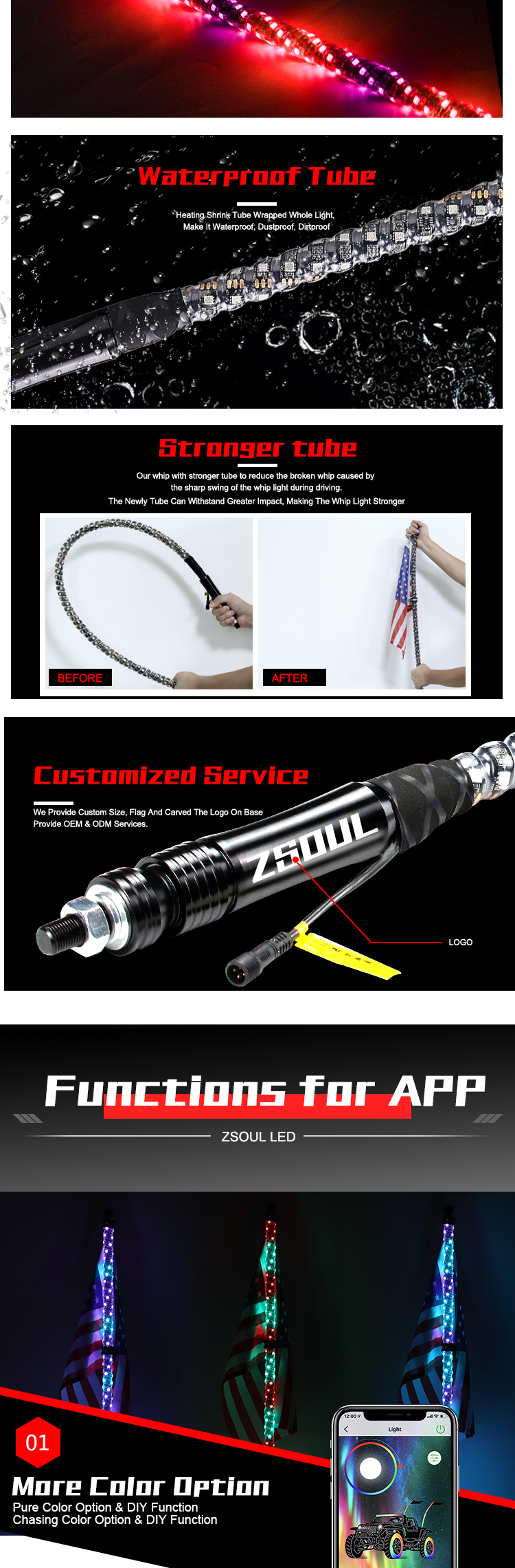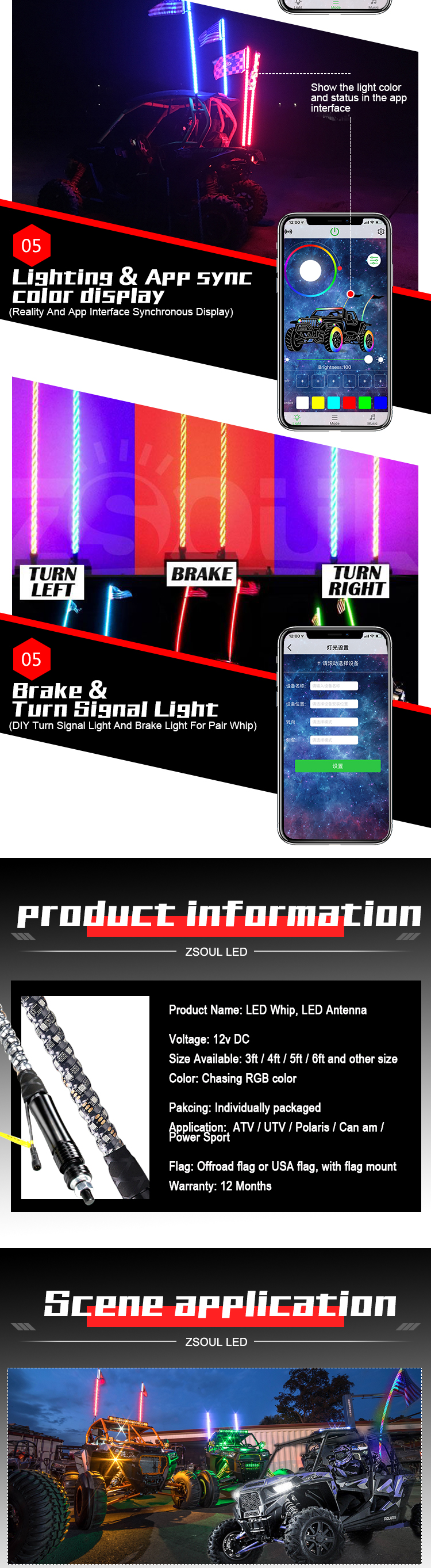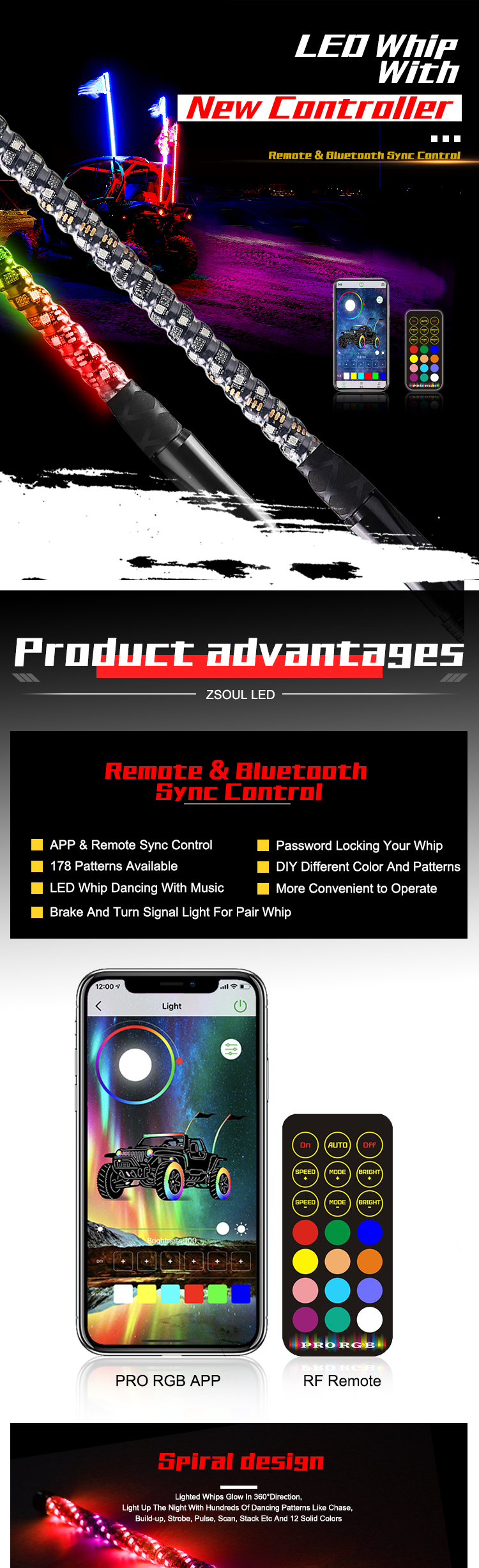 title | 2/3/4/5/6ft RGB Chase Color Remote Control/App Controlled Quick Release LED Whip Light Antenna Safety Sign for ATV UTV Dirt Bike RZR | ||||