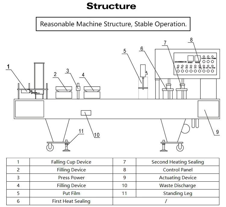 | Function: | Cup filling and sealing | Applies to: | Filling and sealing of various liquid and solid materials |