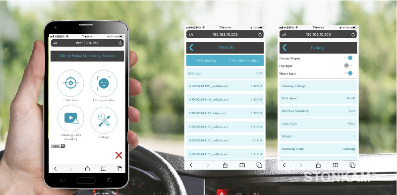 STONKAM ADAS Anti-fatigue Driver Fatigue Monitoring System Driver Fatigue MonitorThe Android APP designed by STONKAM® on the mobile phone can be connected via Wi-Fi. Device configuration, file upload and other functions can be easily completed on the APP.