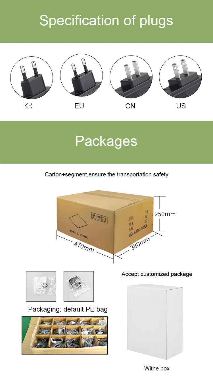 | Output: | 5v1a 5v2a 5v0.5a 12v1a 12v0.5a; | Package Type: | PE bag + paper segment + carton /customized; |