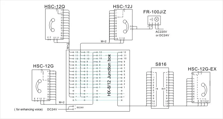 Two one-way battery-free telephones can be connected for communication. When the cables of the HSC-1Q are connected through the cab console, the connecting cables should be screened and well grounded.