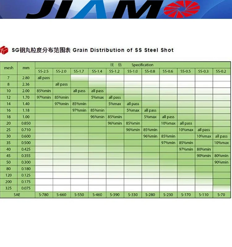 | Product name: | Steel shot; | Abrasive Grain Sizes: | 2.5mm - 0.3mm; |
