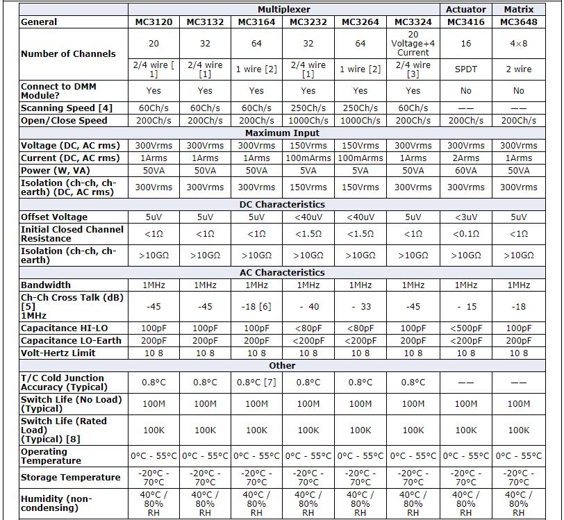 8 different modules available, including MC3065 6.5 DMM module and MC3120 MUX module (these modules are included in mainframe model M302)