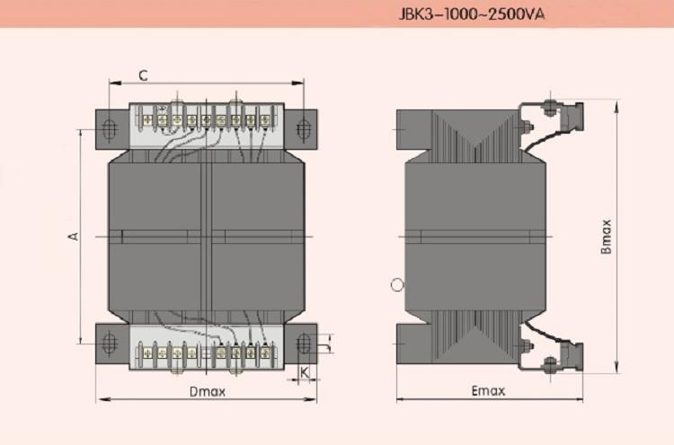 JBK3 series machine tool control transformer is a new product developed with reference to the samples of SIMENS company, which conforms to VDE0550, IEC204-1, IEC439, GB5226 and other standards. It is suitable for 50~60Hz AC circuit, the rated output voltage is less than 220V, and the input rated voltage is less than 500V. Control power supply for mechanical equipment and general electrical appliances, power supply for task lighting and signal lamps.