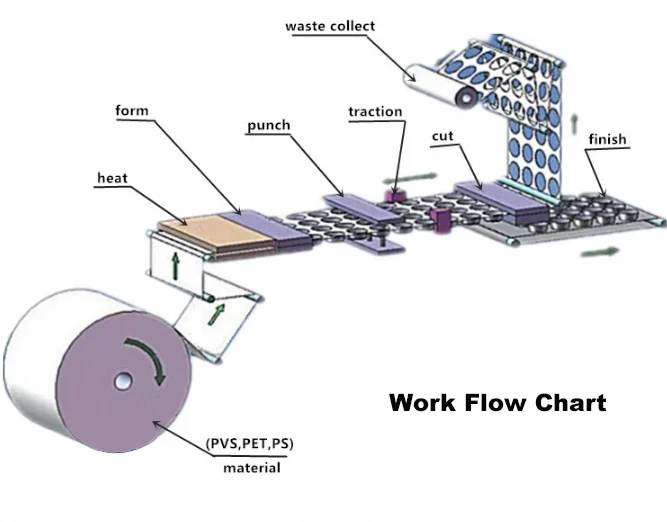 | Cooling of mold: | Tap water or recycled water; | PVC rigid film: | 0.15-0.5x400mm; |