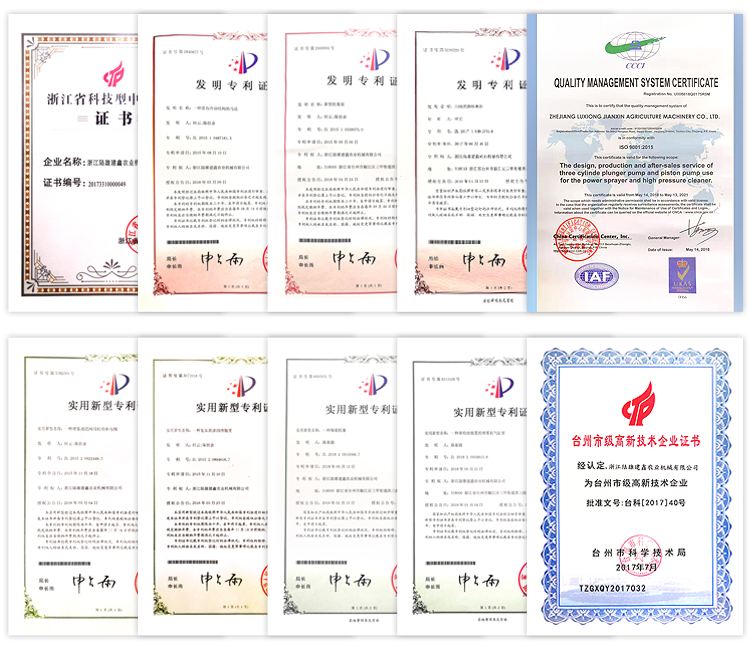 It was founded in 2000 by Luxiong Machinery Industry Co., Ltd., a well-known Taiwanese company. And is the only subsidiary in China. Our company is a professional manufacturer of agricultural spray pumps, sprayers, high-pressure cleaners, high-pressure atomizers, plant protection machinery, garden tools and agricultural spare parts, with 42 patents, 82 trademarks, and ISO 9001:2015 certification.