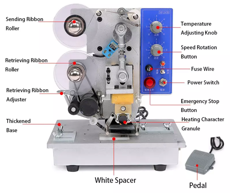 10-100 print times/min 2 and 3 Printhead Line HP-241B Desktop Coder HP-241B Electric Webbing Date Coding Machine 1. Use hot stamping technology instead of ink printing; 2. It can be clearly printed on various soft sealing materials; 3. The special replacement structure makes the replacement more convenient; 4. Perfect code, light weight, convenient operation, modular design, convenient maintenance and low maintenance cost; 5. Constant temperature control; 6. The working temperature can be adjusted to adapt to different sealing materials and color bars; 7. Widely used for printing date and weight of products in food, beverage and other industries. |