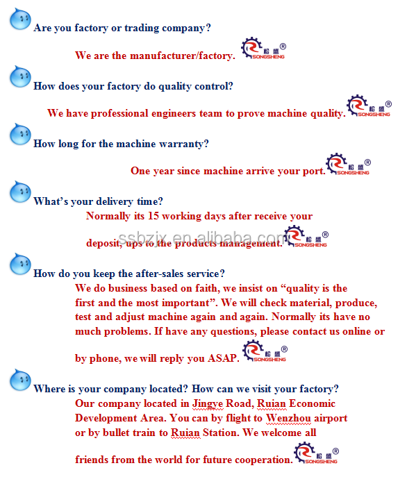 Ruian Songsheng Machinery Co., Ltd.Located in China's plastic machinery production base - Ruian City. The company specializes in the production of film blowing machines, plastic bag machines and other supporting equipment for more than ten years. We pursue machine quality and innovation. We export our machines to Southeast Asia, Middle East, South Asia, Russia, North Asia, North America, Eastern Europe, Africa and other parts of the world. Welcome all countries to visit our company.