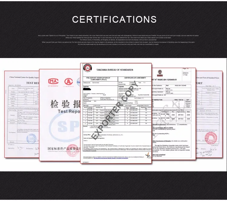 A: We have more than 14 years experience in exporting products to worldwide countries; can provide the high quality fastener!