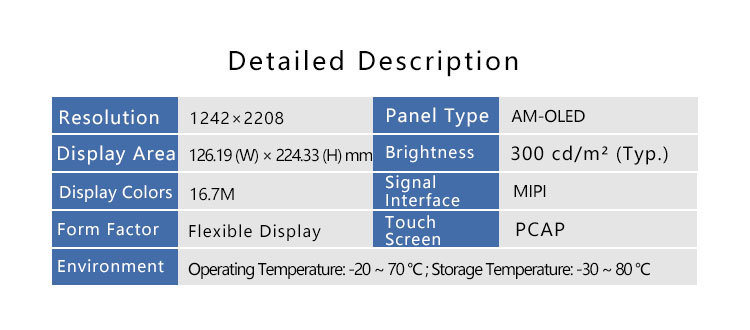 | interface: | MIPI 62 pins | Display area: | 126.19*224.33mm |