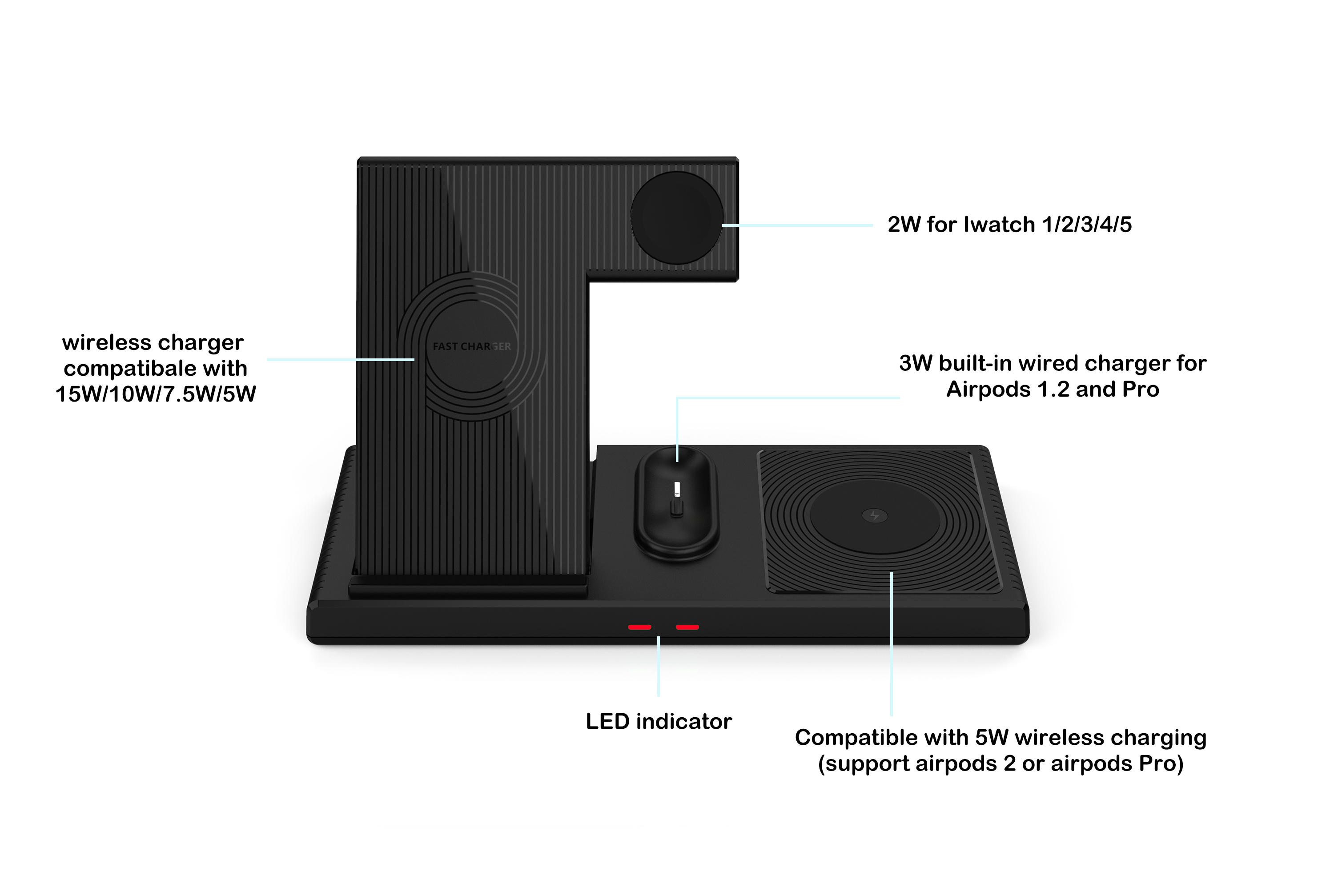 | product name: | 4 in 1 Multifunctional Mobile Phone Holder Wireless Charging Station | strength: | 15W/10W/7.5W/5W |