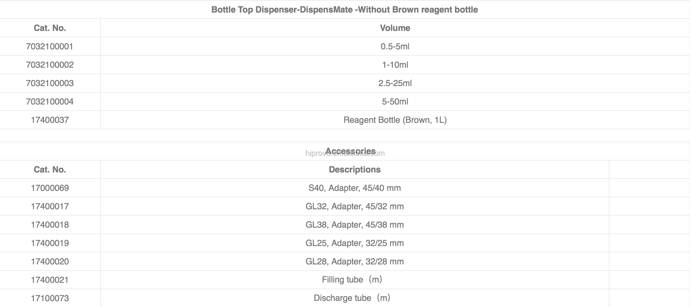 • Excellent chemical resistance, parts made of PTFE, FEP, BSG, PP • Fully autoclavable at 121°C • Four bottle top dispensers ranging from 0.5mL to 50mL • Easy to clean and maintain • Optional flexible drain with safety handle for quick and precise dispensing • Maximum vapor pressure. 500mbar, maximum viscosity. 500mm2/s, • Maximum temperature. 40oC, maximum density. 2.2g/cm3 • Dispensemate available with S40, GL32, GL38, GL25, GL28 |