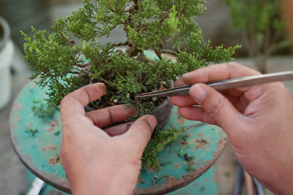 Bonsai trees must be pruned to fix the shape of the extended branches and let sunlight into the tree.