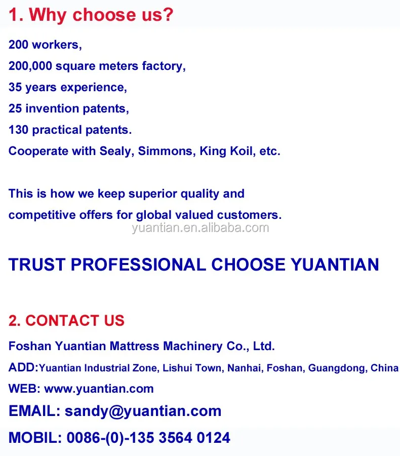Every year, Yuantian participate in well-known mattress machinery exhibitions with our newly developed products.