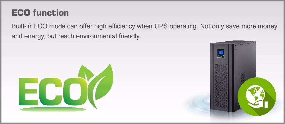 Built-in ECO mode can offer high efficiency when UPS operating. Not only save more money and energy, but reach environmental friendly. online ups inverter 6kva