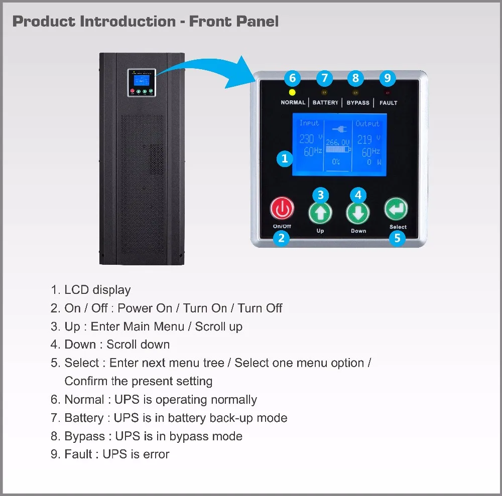 | Online UPS Display: | LCD UPS; | Online UPS Parallel: | Available; |