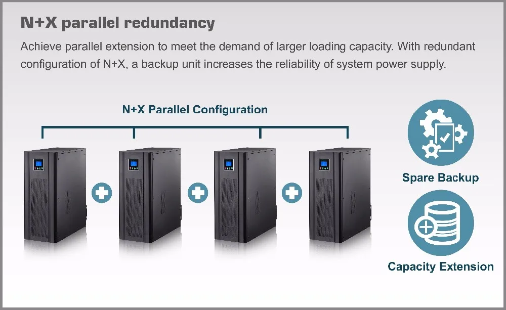 Achieve parallel extension to meet the demand of larger loading capacity. With redundant configuration of N+X, a backup unit increases the reliability of system power supply. online ups inverter 6kva