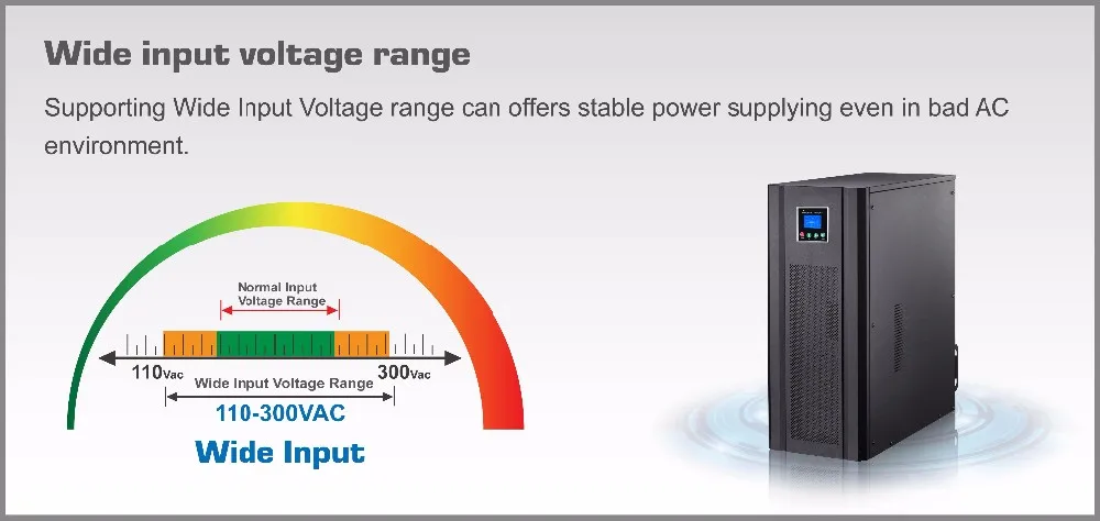 Supporting Wide Input Voltage range can offers stable power supplying even in bad AC environment. online ups inverter 6kva
