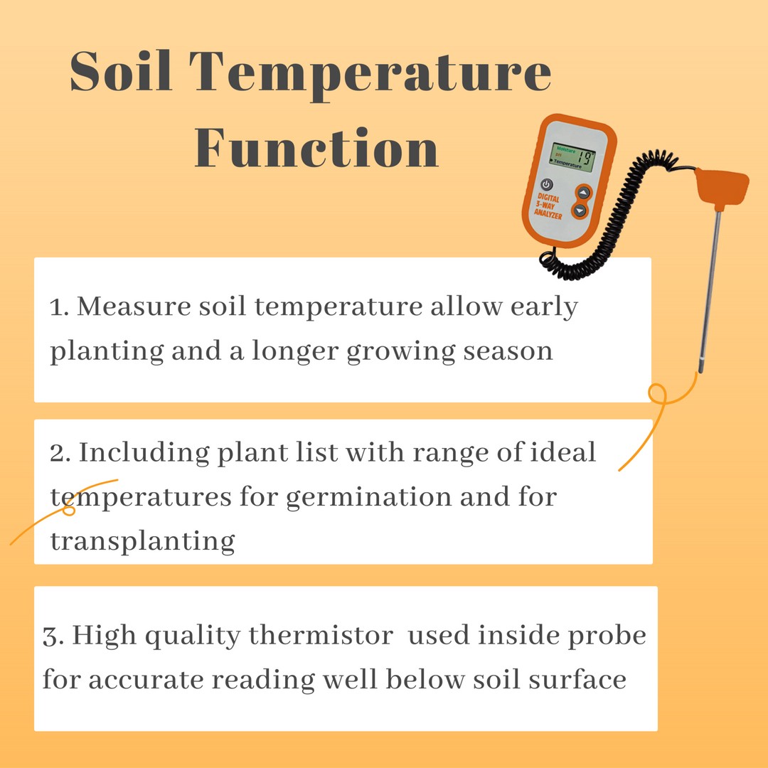 | describe: | Digital 3 in 1 Soil Moisture pH Meter Thermometer | ||||