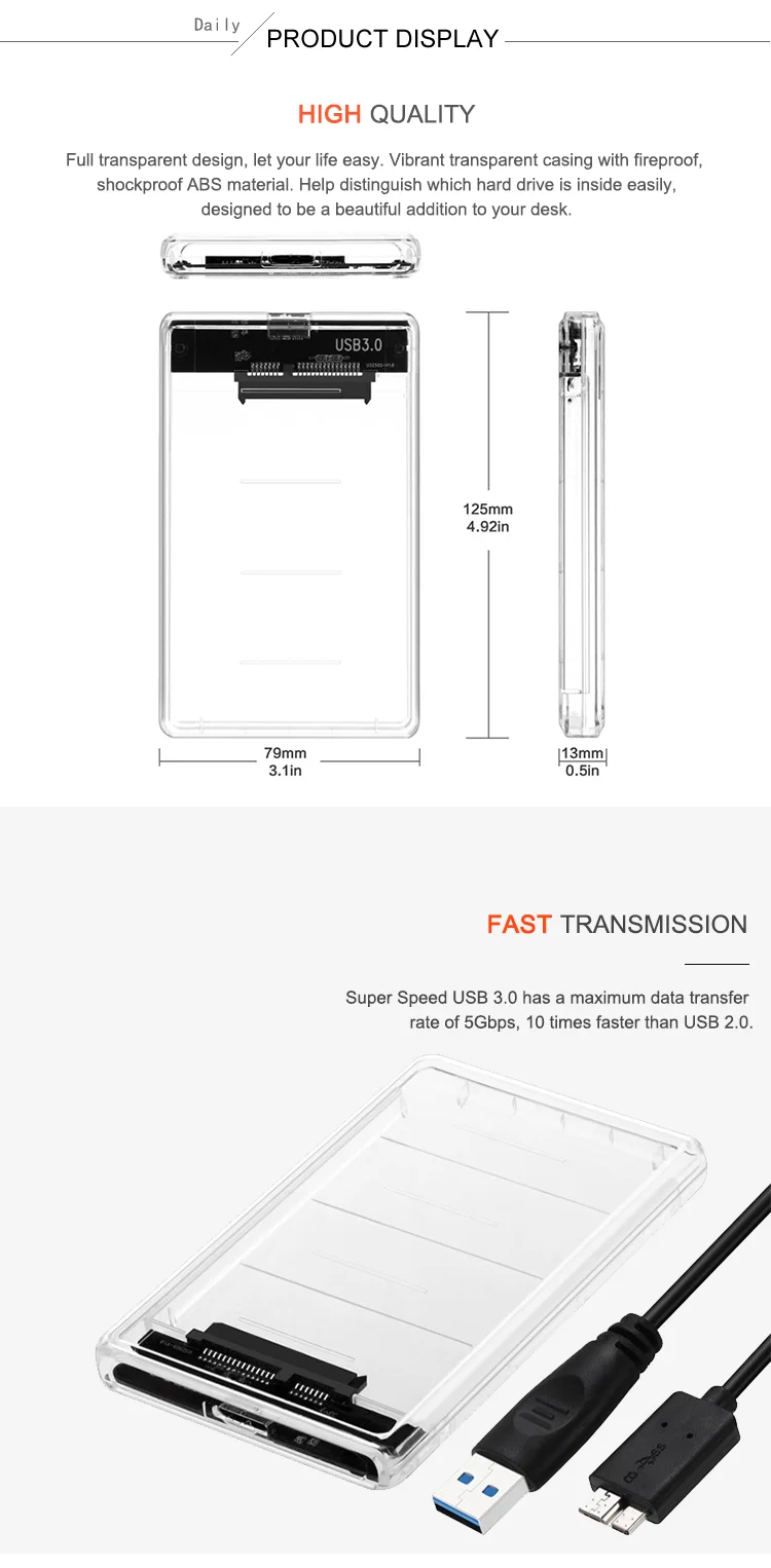 | Product Name | 2.5" USB 3.0 SATA Hard Drive Enclosure |