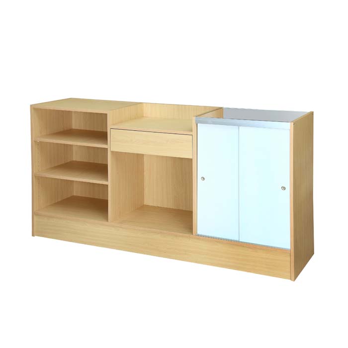 1. This cashier is made of durable MDF or particleboard + tempered glass;