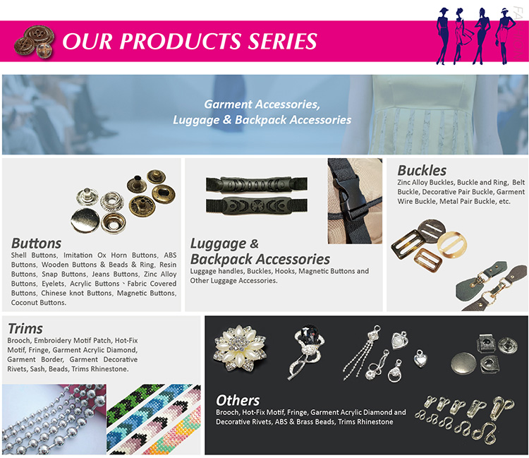 | button | ABS Buckle, Shell Buckle, Coconut Buckle, Wooden Buckle & Beads & Ring, Faux Horn Buckle, Resin Buckle, Snap Buckle, Jeans Buckle, Zinc Alloy Buckle, Eyelet, Acrylic Buckle, Cloth Buckle, China Knot Buckle, Magnetic Buckle |