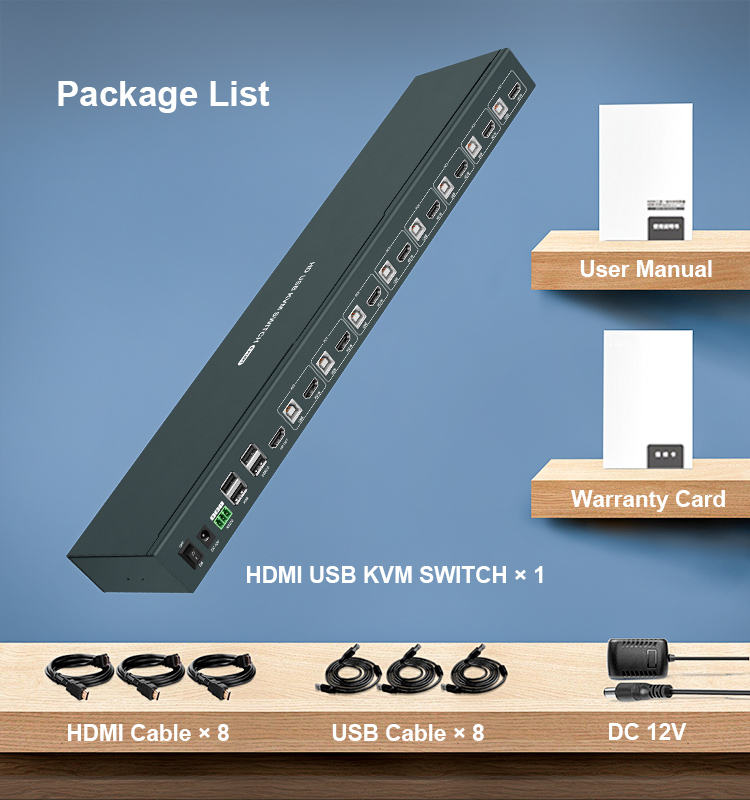 | payment terms: | Western Union, D/P, D/A, T/T, MoneyGram | Packaging Details: | Usb Kvm Switch S7809H Size: 40*27*10.5cm Weight: 2.2kg Packing Type: 1, Neutral Box/OEM Box 2, Single Size: 445*95*35mm 3, Included Accessories: HDMI KVM 8*1 Switch Host*1pcs HDMI cable*8pcs RS232 terminal*1pcs USB-A to USB-B cable*8pcs hardware accessories*2pcs power adapter*1pcs foot pad*8pcs user manual*1pcs warranty card*1pcs |