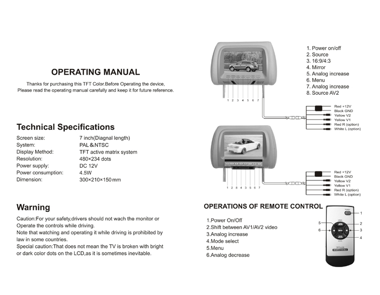 7" Universal Headrest TFT LCD Display
